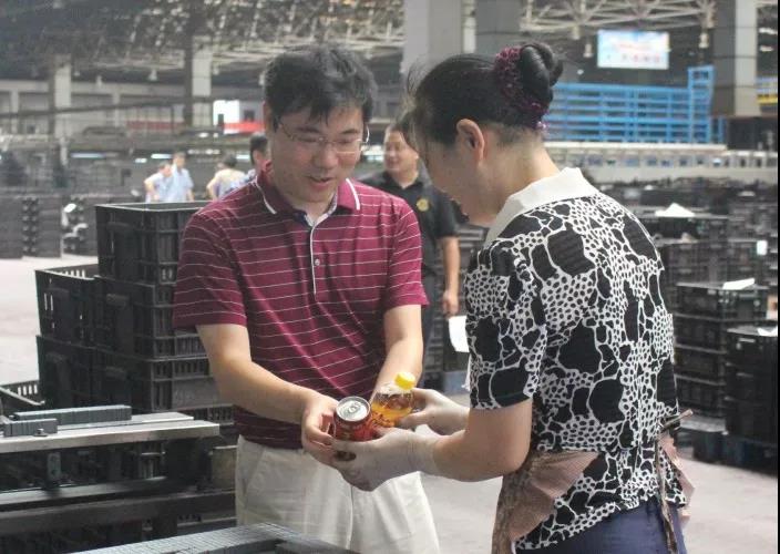 在溫度高達(dá)近40℃的鐵氧體原材料車間里,田良玉親手將一件件涼茶等防暑降溫用品送到職工手中,向大家表示親切慰問,并叮囑大家在堅(jiān)守崗位的同時(shí)注意安全生產(chǎn),做好防暑降溫工作。