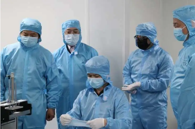 316日下午,湖南航天黨委書記、董事長唐應(yīng)偉,副總經(jīng)理宋衛(wèi)武一行,專程調(diào)研天麓公司口罩生產(chǎn)線。
