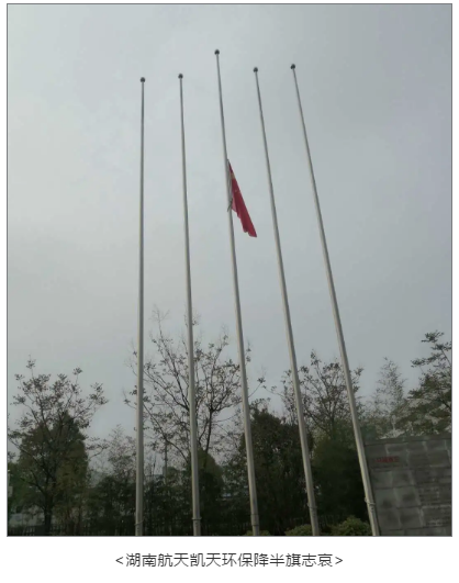為表達湖南航天全體干部職工、離退休人員及家屬對抗擊新冠肺炎疫情斗爭中犧牲的烈士和逝者同胞表示深切哀悼。44日,湖南航天及具備條件的3家單位均降半旗志哀,同時鳴響防空警報。