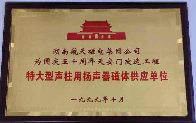湖南磁電成立于1995年,正式投產(chǎn)鐵氧體揚聲器磁環(huán)產(chǎn)品。創(chuàng)業(yè)初期,老一輩航磁人充分發(fā)揚“特別能吃苦、特別能戰(zhàn)斗、特別能攻關(guān)、特別能奉獻”的載人航天精神,自己動手修整租賃的簡易工棚,開挖設(shè)備安裝基礎(chǔ),調(diào)試設(shè)備,短時間內(nèi)完成了Y30高性能揚聲器環(huán)磁的技術(shù)攻關(guān),成為國慶五十周年天安門改造工程特大型聲柱揚聲器專用喇叭磁供應(yīng)單位,打響“航天磁”品牌。至今,“航天磁”品牌仍享譽海內(nèi)外。