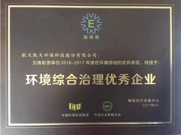 航天凱天榮獲綠英獎(jiǎng)榮獲“環(huán)境綜合治理優(yōu)秀企業(yè)”稱(chēng)號(hào)
