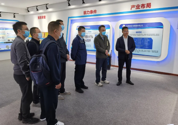 丁猛一行首先參觀了新材料院展廳,趙相國從新材料院的發(fā)展歷程、研究領域、產業(yè)布局、主要產品技術成果等方面作了詳細的介紹。