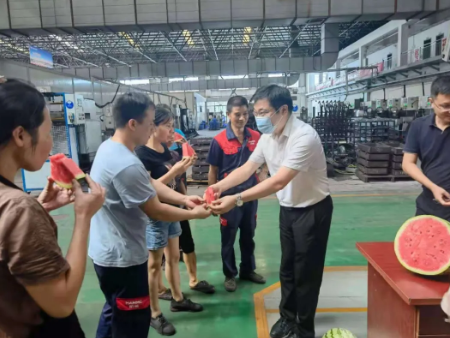 在慰問過程中,宋衛(wèi)武對大家的辛勤付出表示肯定和衷心感謝,并要求相關(guān)負(fù)責(zé)人做好生產(chǎn)防暑降溫措施,把員工安全放在第一位。宋衛(wèi)武表示,一定要樹立安全意識,在工作時(shí)注意防暑降溫,結(jié)合工作生產(chǎn)實(shí)際,合理安排工作時(shí)間,盡量避免高溫時(shí)段作業(yè),定期檢查場內(nèi)各項(xiàng)設(shè)備,一定要在確保安全的前提下開展好各項(xiàng)工作。