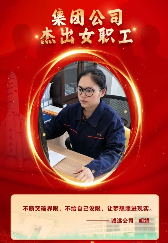 在近日集團(tuán)公司召開的“七一”表彰會(huì)上,湖南航天誠遠(yuǎn)公司胡娟獲評(píng)集團(tuán)公司“杰出女職工”。